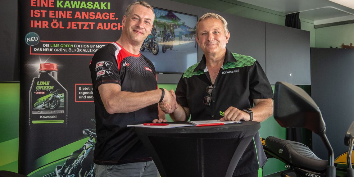 Im Rahmen einer Partnerschaft arbeiten der Motorradhersteller Kawasaki und der französische Schmierstoffexperte Motul seit Anfang 2020 zusammen. So spricht Kawasaki nicht nur eine klare Empfehlung für Motul-Produkte im Rahmen von Service- und Pflegearbeiten aus. In enger Kooperation entstand auch das Lime-Green-Motorenöl, das eine für Kawasaki-Motorräder typische grüne Farbe hat und sogar leicht nach Limette duftet. Durch die Vertragsverlängerung um weitere drei Jahre wird die Erfolgsgeschichte nun fortgesetzt.