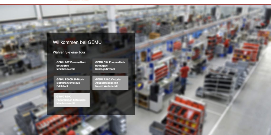 Ein Blick hinter die Kulissen? Wo werden die GEMÜ Produkte hergestellt? Welche Logistik sorgt für die reibungslose Zustellung? Dies und mehr kann ganz einfach bei einer virtuellen Tour erlebt werden. Teilnehmer gewinnen einen Eindruck in 3D. Dabei können sie in alle Richtungen schauen und sich an die Orte begeben, die sie besonders interessieren. Der Guide begleitet sie dabei.