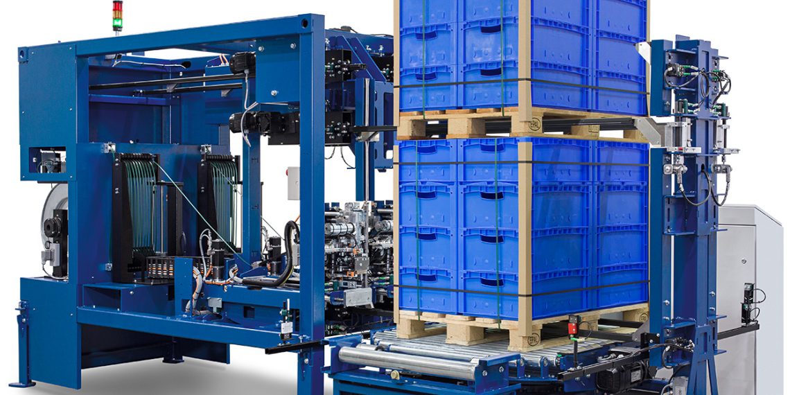 Die KZV-321 von Mosca passt sich flexibel an unterschiedlichste Produktformen an und eignet sich für Logistik und Warentransport. Sie bietet Anwendern die Möglichkeit einzelne und gedoppelte Paletten in unterschiedlichen Höhen mit ein und derselben Maschine zu umreifen. Bisher waren diese beiden Anwendungsfälle nur durch zwei unterschiedliche Maschinen umsetzbar.
