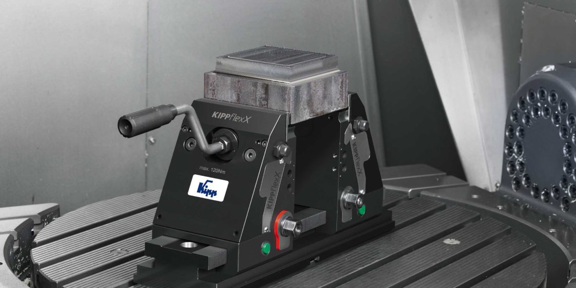 Das HEINRICH KIPP WERK hat den bewährten 5‑Achs-Spanner kompakt weiterentwickelt: KIPPflexX ist eine vielseitige Lösung für jede 5‑Achs-Fräsmaschine, die sich sowohl für die Rohteil- als auch für die Niederzugspannung einsetzen lässt. Das ist auf dem Markt einzigartig. Neu ist die bedienerfreundliche Schnellverstellung über eine Kurbel.