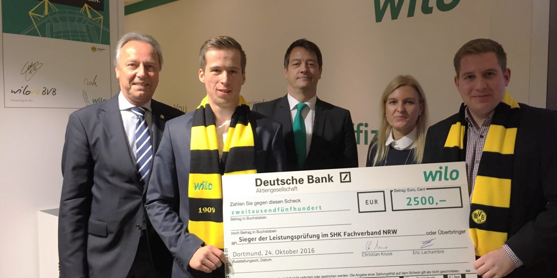 Die Auszeichnung des SHK-Nachwuchses hat bei Wilo Tradition: Bereits seit 1998 wird der Wilo-Förderpreis NRW von dem Dortmunder Pumpenhersteller an die Jahrgangsbesten des praktischen Leistungswettbewerbs verliehen.