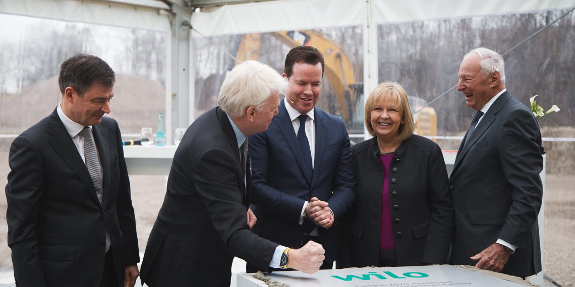 Mit der feierlichen Grundsteinlegung für eine hochmoderne „Smart Factory“ am Stammsitz in Dortmund, hat die Wilo Gruppe die nächste Phase ihres Standortentwicklungsprojekts „Wilo-Campus Dortmund“ eingeläutet. Rund 150 Gäste aus Wirtschaft, Politik, Wissenschaft, Kultur und Sport, darunter NRW-Ministerpräsidentin Hannelore Kraft und Dortmunds Oberbürgermeister Ullrich Sierau, bildeten den würdigen Rahmen für die traditionelle Zeremonie. „Dies ist der Beginn für ein großartiges Bauvorhaben mit einer gewaltigen Dimension”, sagte Dr. Jochen Opländer, Ehrenvorsitzender des Aufsichtsrats, in seiner Ansprache. Oliver Hermes unterstrich die Bedeutung dieses Jahrhundertprojekts, die weit über die Stadtgrenze Dortmunds hinausgehe. „Es gibt ausreichend Beispiele dafür, dass das produzierende Gewerbe das Ruhrgebiet verlässt. Wir haben uns bewusst gegen diesen Trend entschieden”, hob der Wilo-Vorstandsvorsitzende hervor, der der Region als gebürtiger Essener besonders verbunden ist und den Ehrentitel „Bürger des Ruhrgebiets“ trägt sowie seit Ende des letzten Jahres Mitglied im Geschäftsführenden Arbeitskreis des Initiativkreises Ruhr ist. Wichtig sei es nun, das Ziel des Neubaus stets im Auge zu behalten: