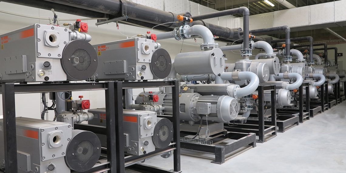 Neben der Herstellung von energieeffizienten Vakuumpumpen unterschiedlichster Technologien, konzipiert Busch auch zentrale Vakuumsysteme, die individuell an die Kundenbedürfnisse angepasst werden. Eine solche Zentralisierung der Vakuumversorgung bringt viele Vorteile. Zum einen werden weniger Vakuumpumpen als bei einer dezentralen Vakuumversorgung gebraucht. Dies ermöglicht zusammen mit einer bedarfsabhängigen Steuerung enorme Energieeinsparungen. Zum anderen kann eine solche Vakuumzentralanlage in einem separaten Raum untergebracht werden, so dass keine Vakuumpumpen mehr in den Produktionsräumen installiert sind. Dadurch sind Geräusch- und Wärmeemissionen von den Arbeitsplätzen verbannt. Individuelle Wärmerückgewinnungskonzepte helfen dem Betreiber die entstehende Abwärme zu nutzen und somit weitere Energieeinsparungen zu erreichen. In gekühlten Produktionsräumen, wie beispielsweise in der Lebensmittelindustrie, kommen weitere Einsparungen durch die Zentralisierung der Vakuumversorgung hinzu, weil Klimaanlagen kleiner ausgelegt werden können. Zentrale Vakuumversorgungen bieten zudem ein Höchstmaß an Betriebssicherheit, da alle systemrelevanten Komponenten redundant ausgeführt sind. Selbst Wartungsarbeiten können bei laufendem Betrieb ohne Leistungsverluste durchgeführt werden.